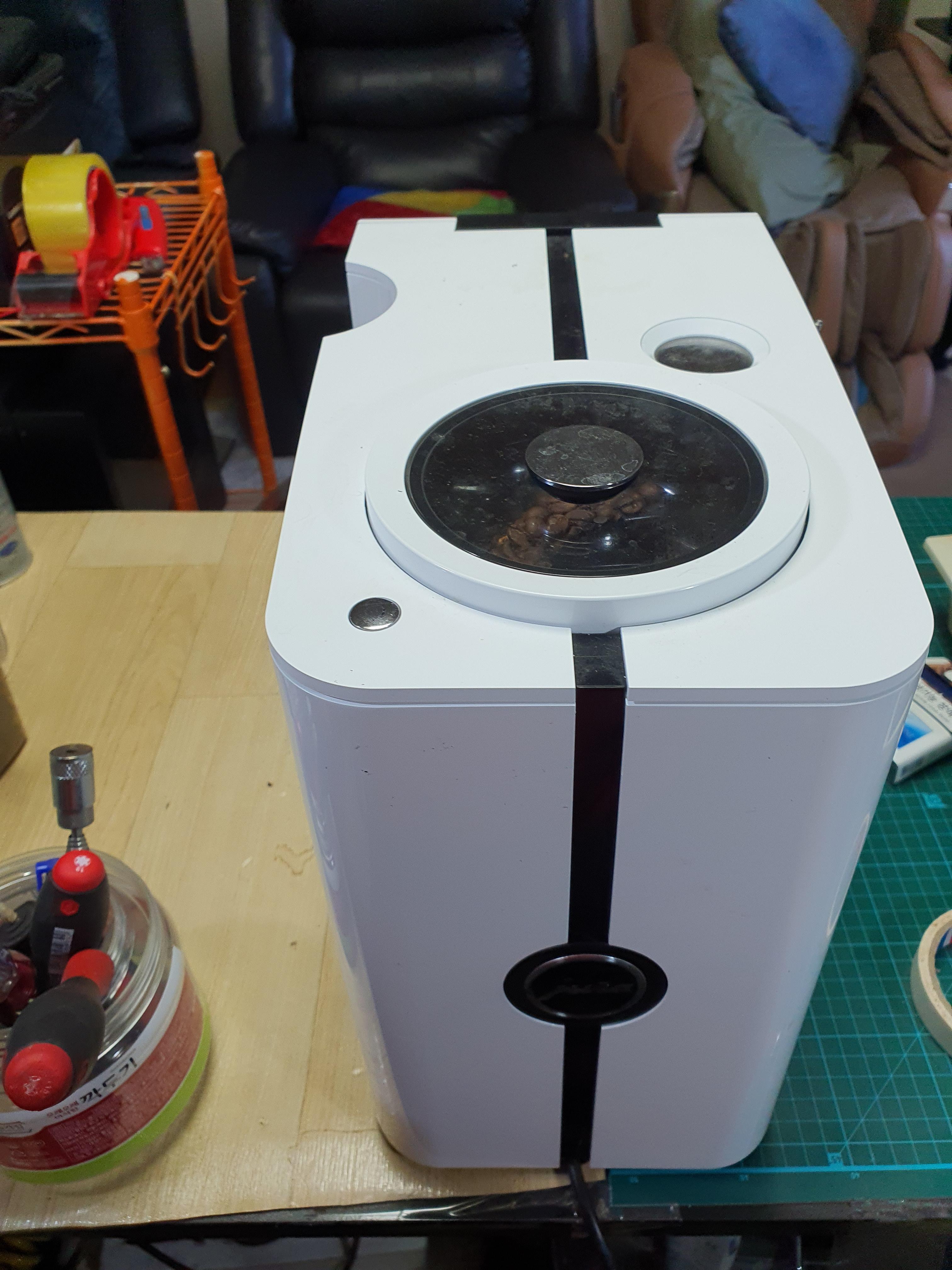 가져오신 기계 사장님 계실때 함께 가동 시켜 보고 제느낌 뭔가 추출기 부터 그라인더 까지 이상 있어보이지만 사장님껜 뭔가 안좋은 부분 이 있는것 같다 운 만 뛰우고 가시자 마자 오픈 추출기 저희꺼 장착하여 원두 갈려 나오는 량 체크 터무니 없이 조금 갈리네요,