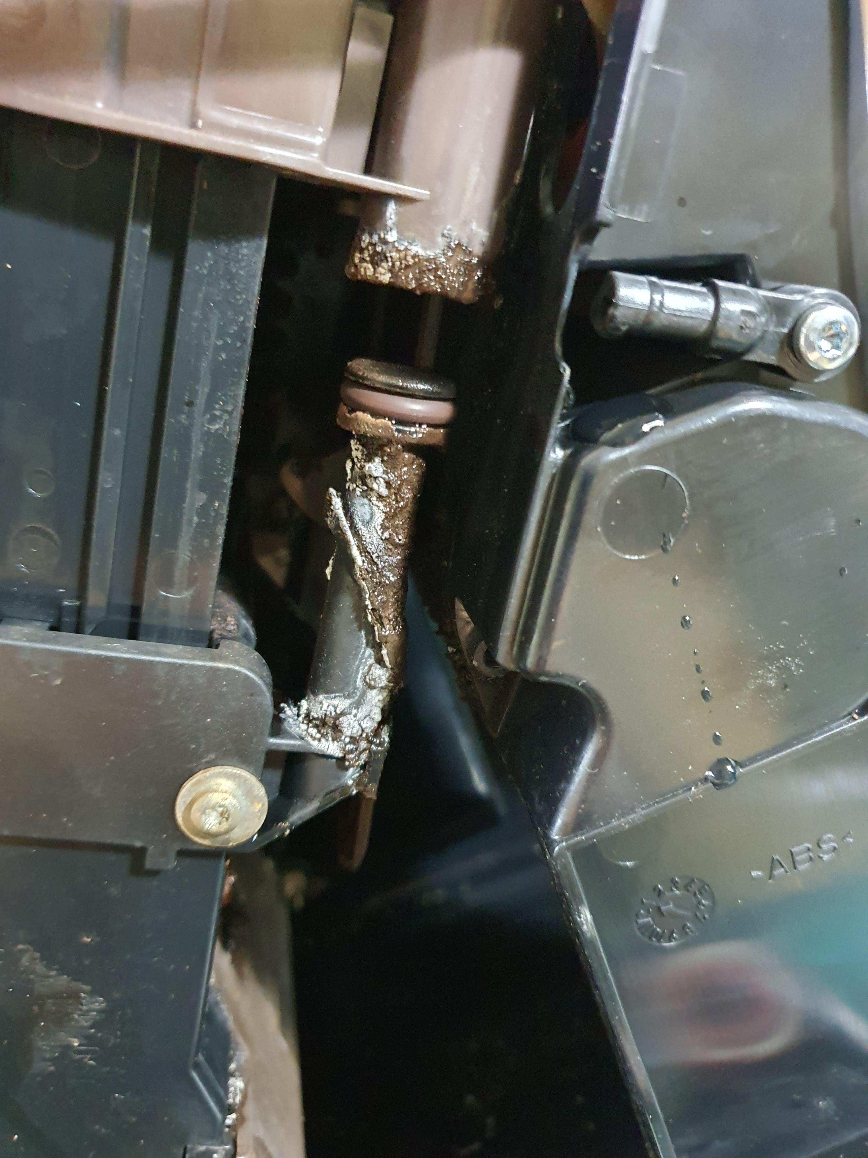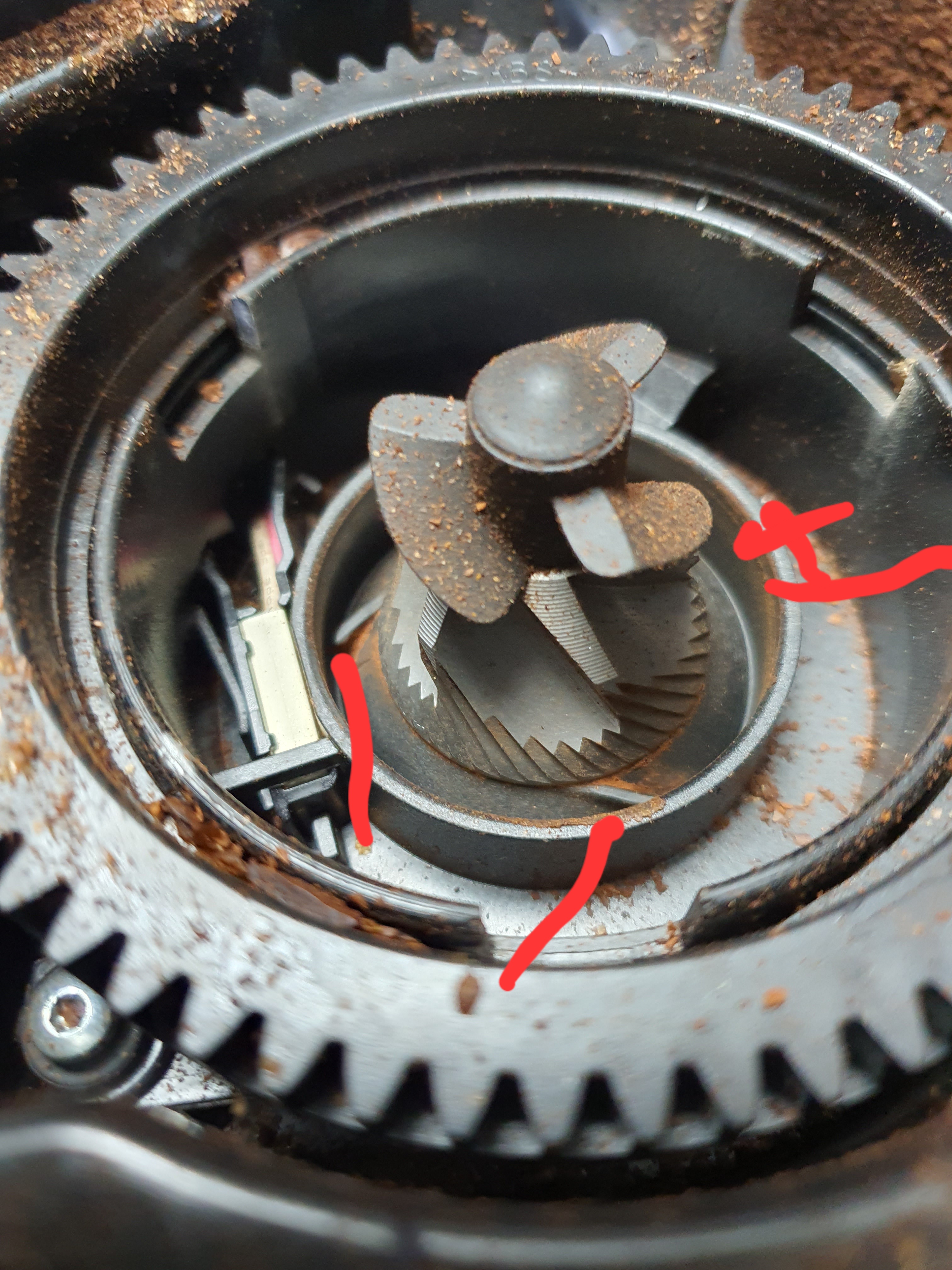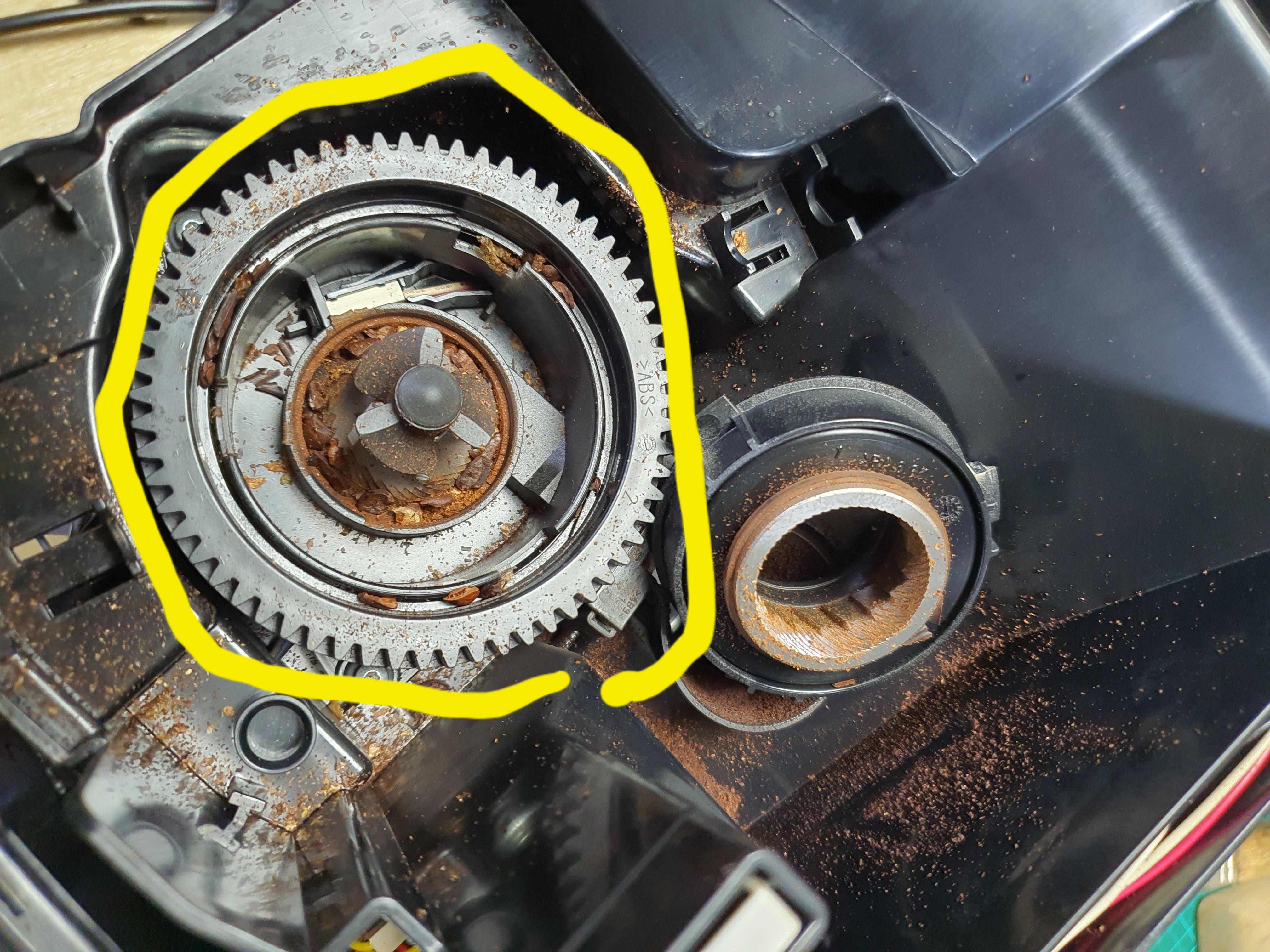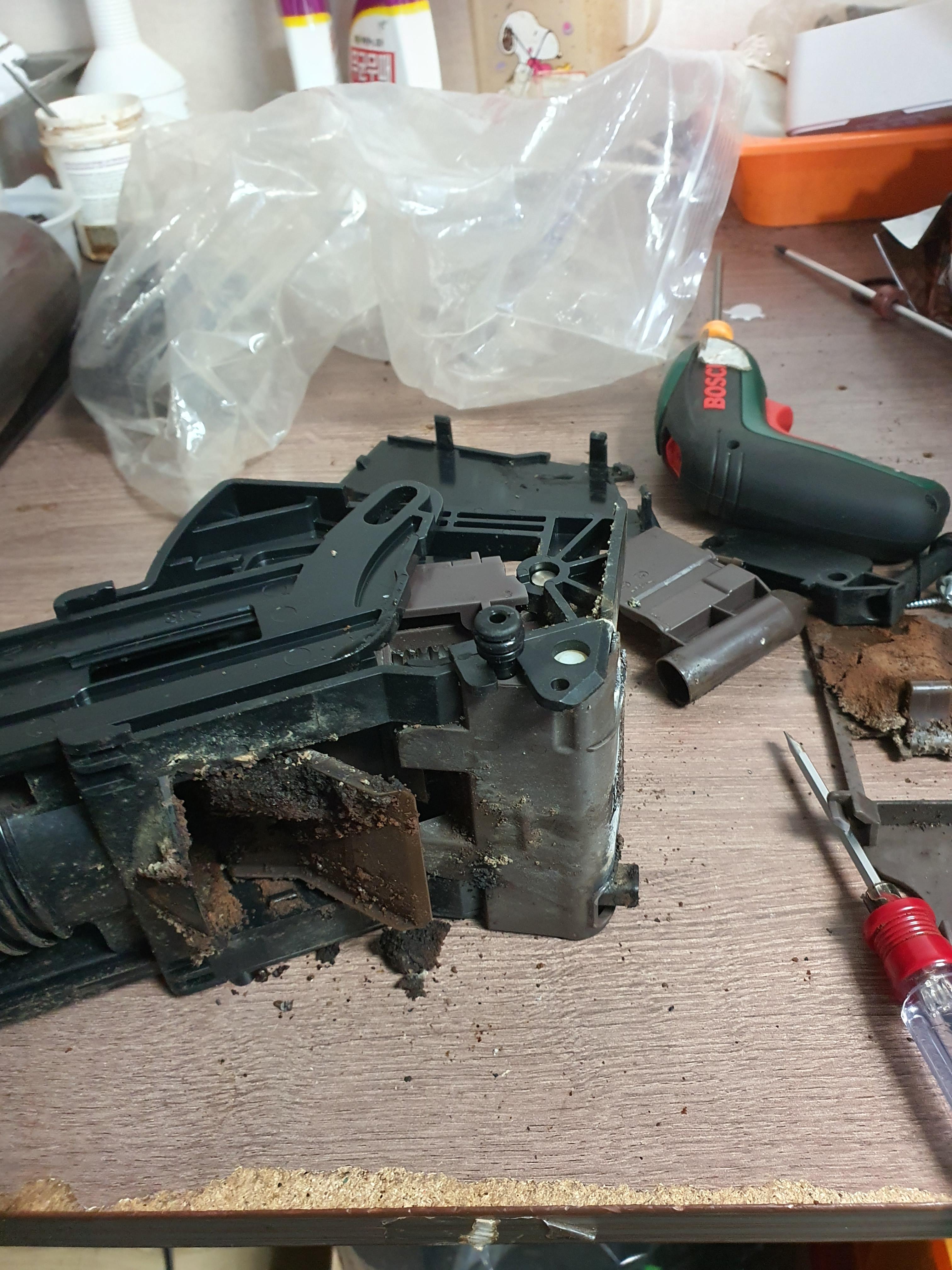 클리닝알약이 그라인더 입구쪽 원두 굳어 있는상태에서 투입된채로 위로 쌓여 올라감.이럴땐 운 나쁘면 그라인더가 위아래 잡아주는곳이 분리되는 경우도 생깁니다.