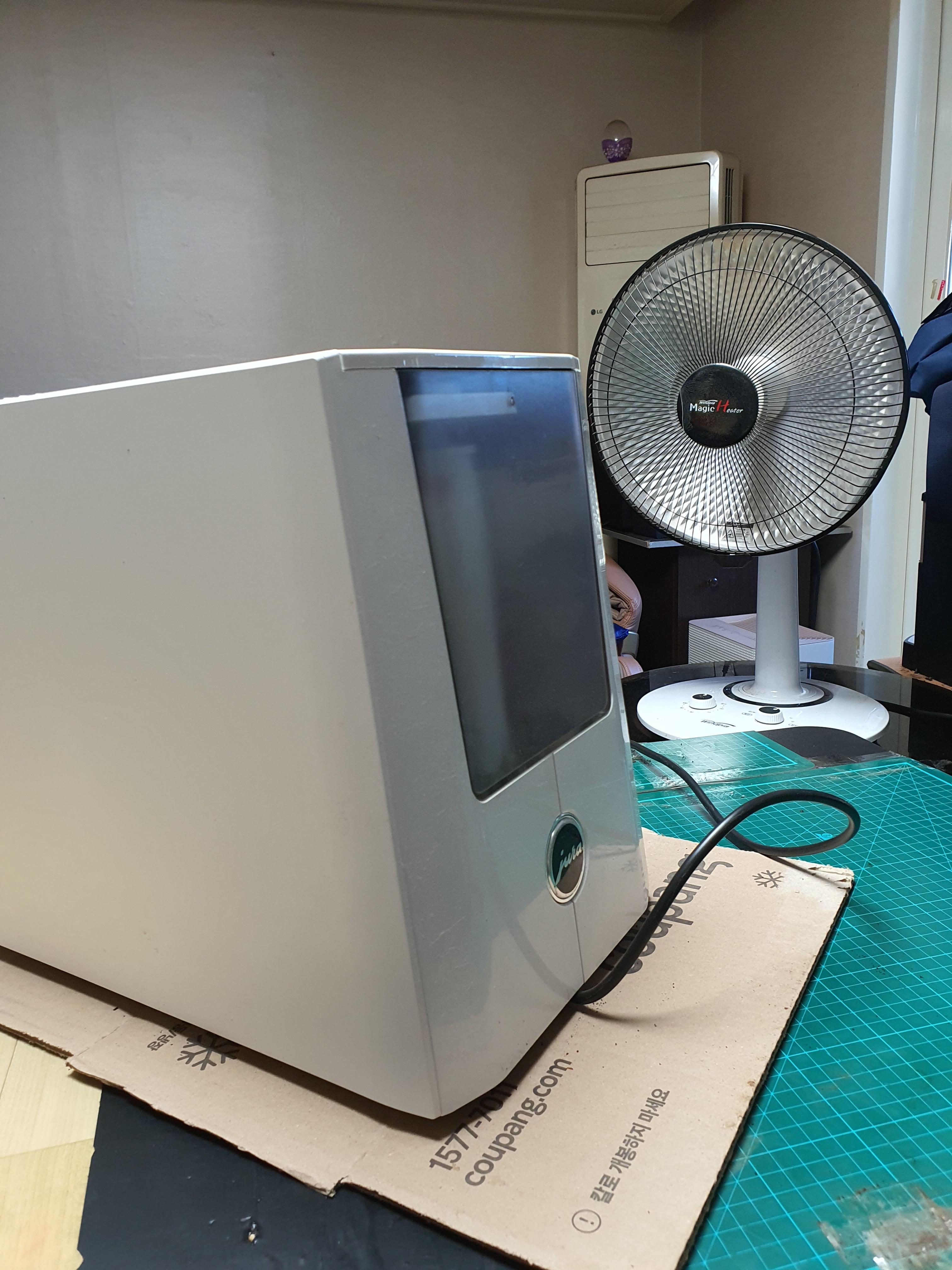 문자 왔음 소리 듣고 cj택배 커피머신 이란 문자 에 보낸분 전화번호 앞자리 보니 12월7일 상담 해드린 고객님. 커피 가 가끔 안나오기도 하고 맛도 틑려진것 같으 시다고' 상담내용 이었습니다. 그런데 이렇게 추운데 수요일 발송 하셨다네요. 이 날씨에 기계가 온전할지. 일단 도착. 물통조차 빠지지 않네요. 기계 가내뿜는 냉기 으악.최대한 동파 되는것 막아보려 분해후 드라이기로 동파 잘되는 부분 들 녹이고' ※절대 이런 상황에서 전원 꽂아서 전기 넣으시면 안됩니다. 이음새들이 부풀어 오르면서 피팅 뿐이 아니라 테프론 호스 앞 압력핀 이 빠지면서 호스도 빠지고 피팅도 쪼개집니다. 우선 추출기 분해하고 정면 오른쪽 편 점검하고 .일단 육안으론 플로메타가 벌어져버렸..